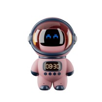 Astronaut Smart Speaker with Wi-Fi, TF Card and Alarm Clock combines speaker playback, time display, and alarm features in one compact design. Available in White and Pink, it uses Wi-Fi connection and a plastic cabinet for everyday desktop or home use.