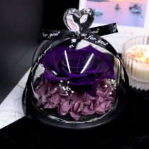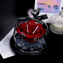 Heart-Shaped Preserved Rose in Glass Dome with LED Light (6 Colors)